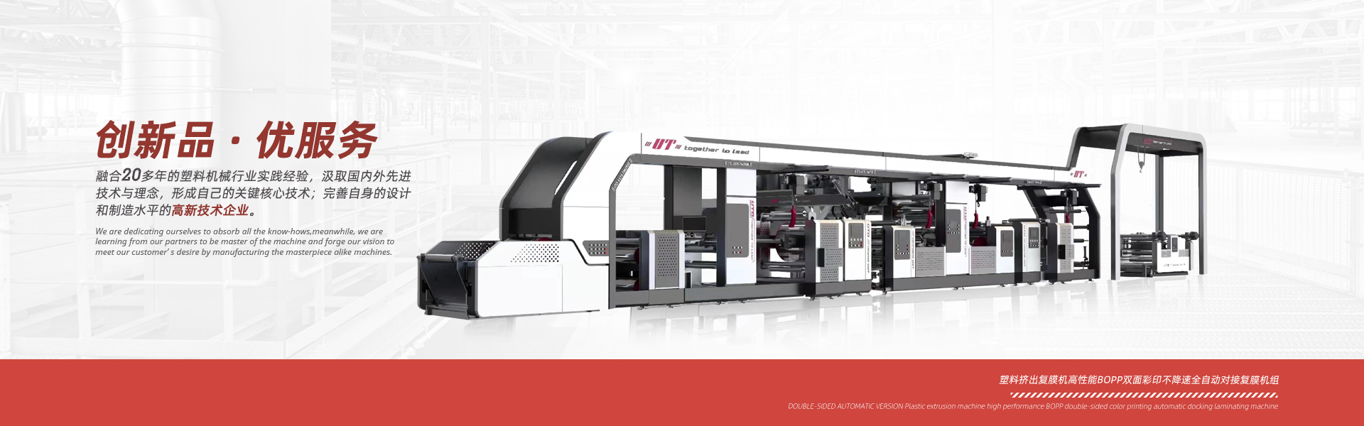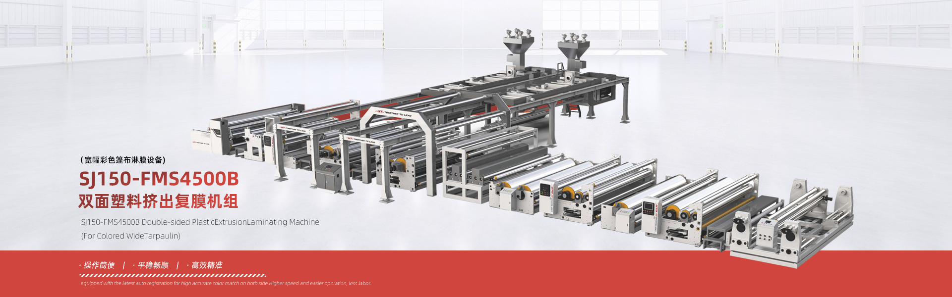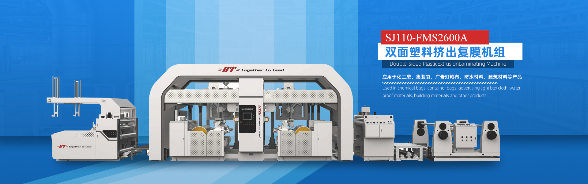 SJ110-FMS2600A雙面塑料擠出復膜機組功能:通過塑料擠出機對卷材表面進行復膜或多種基材復合,以達到提高產(chǎn)品的抗拉強度和防潮性能的效果。 用途:廣泛應用于化工冶金行業(yè)的化工袋、集裝袋,廣告燈箱布、防水材料、建筑材料等產(chǎn)品。 適用基材:PP和HDPE 、LDPE編織布、無紡布等。 ...